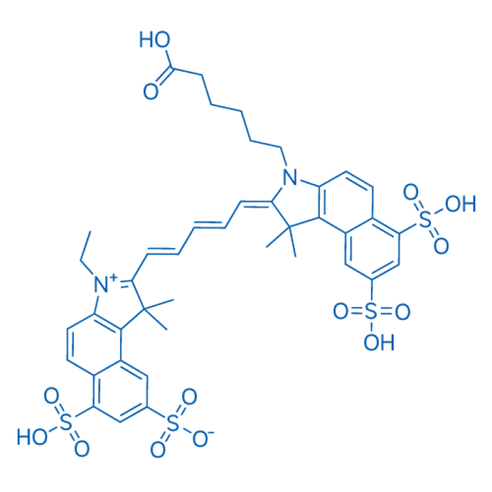 Etiketler: 2-(5-(3-(5-Carboxypentyl)-1, 1-dimethyl-6, 8-disulfo-1H-benzo[e]indol-2(3H)-ylidene)penta-1, 3-dien-1-yl)-3-ethyl-1, 1-dimethyl-6-sulfo-1H-benzo[e]indol-3-ium-8-sulfonate