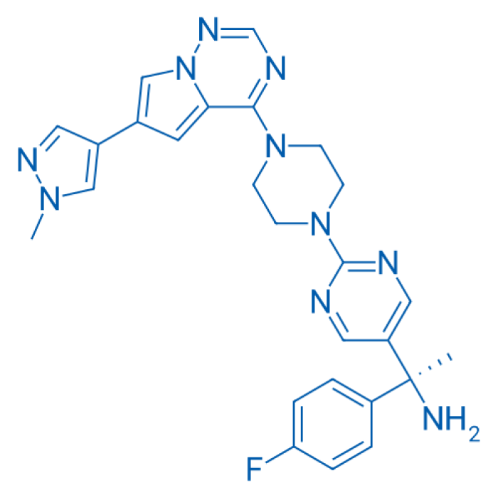 Etiketler: (S)-1-(4-Fluorophenyl)-1-(2-(4-(6-(1-methyl-1H-pyrazol-4-yl)pyrrolo[2, 1-f][1, 2, 4]triazin-4-yl)piperazin-1-yl)pyrimidin-5-yl)ethan-1-amine